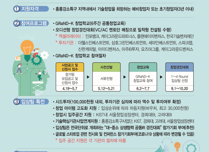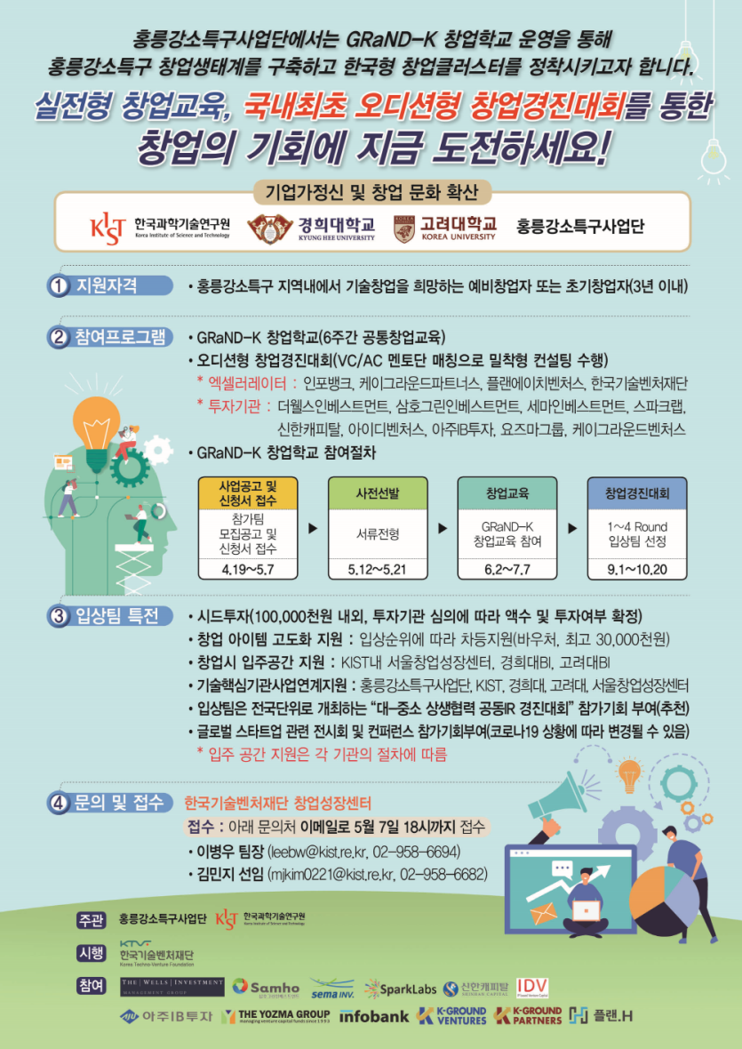GRaND-K 교육 모집기간 2021-04-19~2021-05-07 모임기간 모임장소 지원자격 홍릉강소특구 지역내에서 기술창업을 희망하는 예비창업자 또는 초기창업자(3년 이내) 기타 국내 최초 오디션형 창업경진대회 교육 페이지 정보 작성자 홍릉강소특구사업단 운영자 댓글 0건 조회 109회 작성일 21-11-25 11:48 목록으로 신청하기 본문 상세 정보 목록 게시판 리스트 옵션 검색 닫기