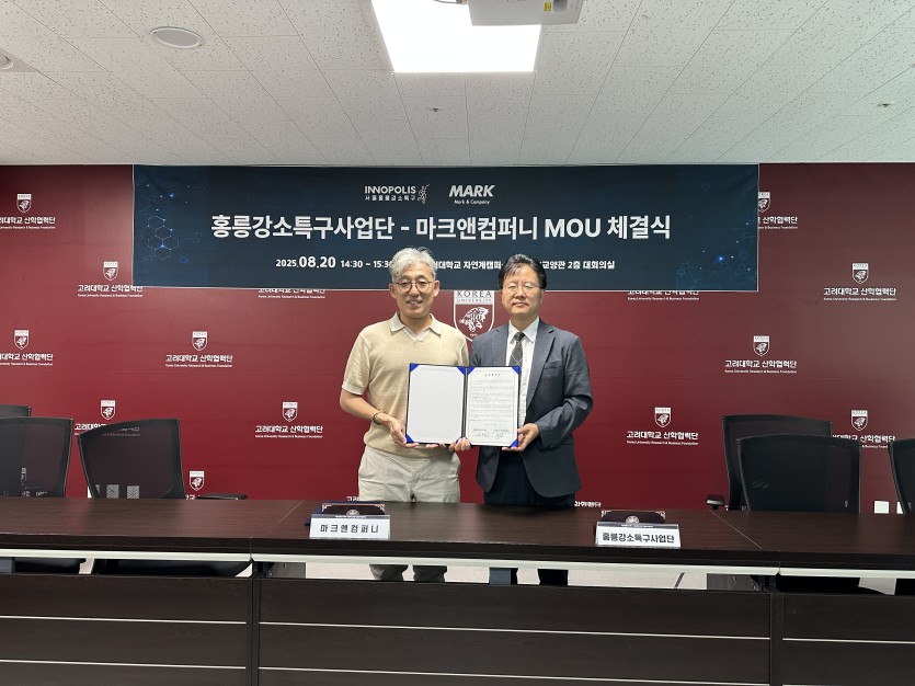 홍릉강소특구사업단(단장 임환)과 주식회사 마크앤컴퍼니(대표 홍경표)는 홍릉특구 내 혁신기업 육성과 스타트업 생태계 활성화를 위해 전략적 업무협약(MOU)을 체결했다.