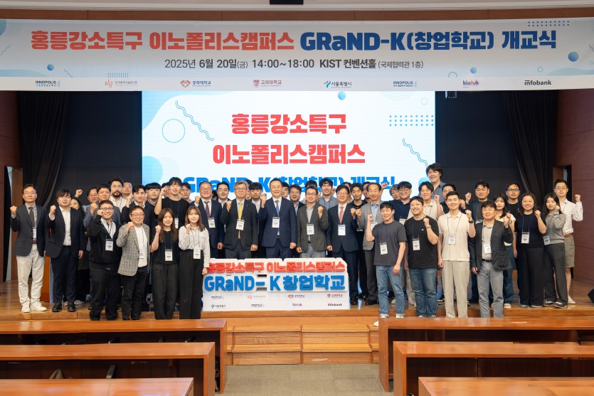[IT동아 차주경 기자] 홍릉강소특구는 6월 20일 한국과학기술연구원(이하 KIST) 국제협력관에서 ‘이노폴리스캠퍼스 GRaND-K 창업학교 개교식’을 열었다. 바이오·헬스케어 딥테크 스타트업의 성장을 이끈 프로그램 ‘GRaND-K 창업학교’의 성과를 공유하고 발전 방향을 논의한 자리다.