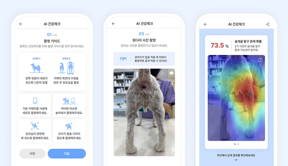 AI건강체크는 높은 정확도도 확보했다. 십일리터는 정상견 1500마리, 슬개골 탈구 환견 3000마리를 대상으로 대규모 임상시험을 진행해 민감도 97.6%, 특이도 98.8%의 정확도를 검증했다. 참고로 반려동물의 경우 농림축산검역본부가 허가한 임상시험 실시기관에서 진행한다.