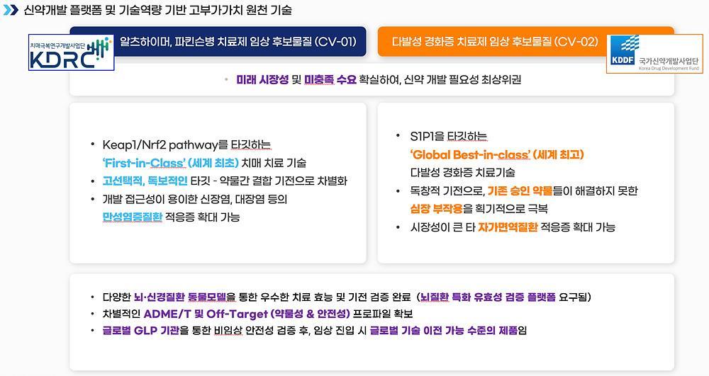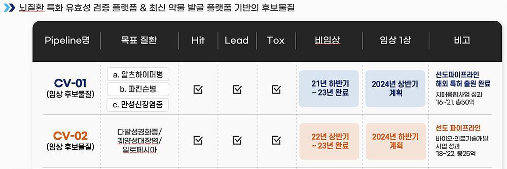 크게보기큐어버스의 주요 파이프라인, CV-01과 CV-02 / 출처=큐어버스